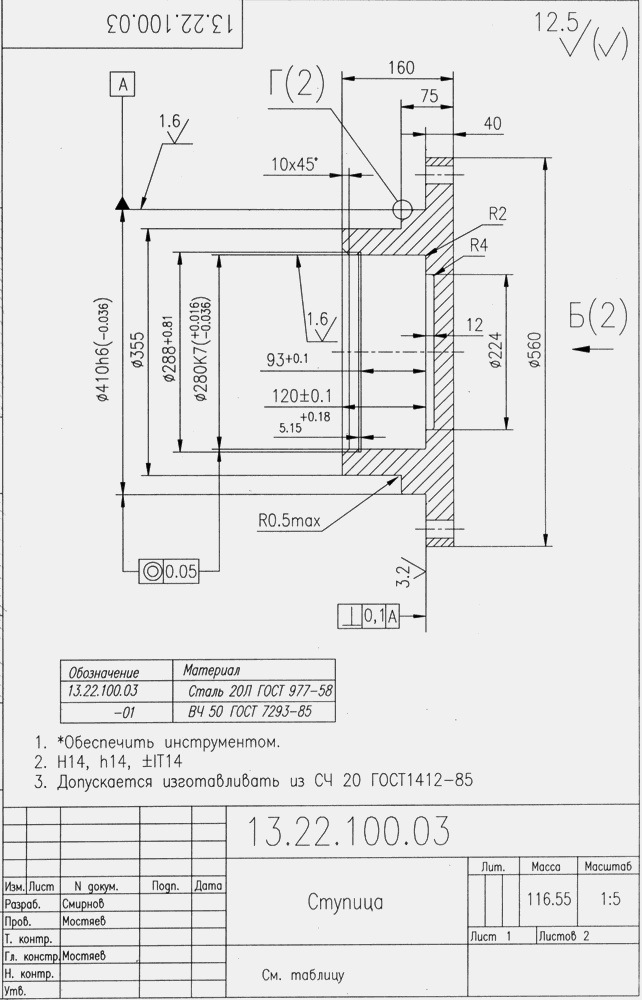 Материал: СЧ15 ГОСТ 1412-85. Масса: 71,2 кг.