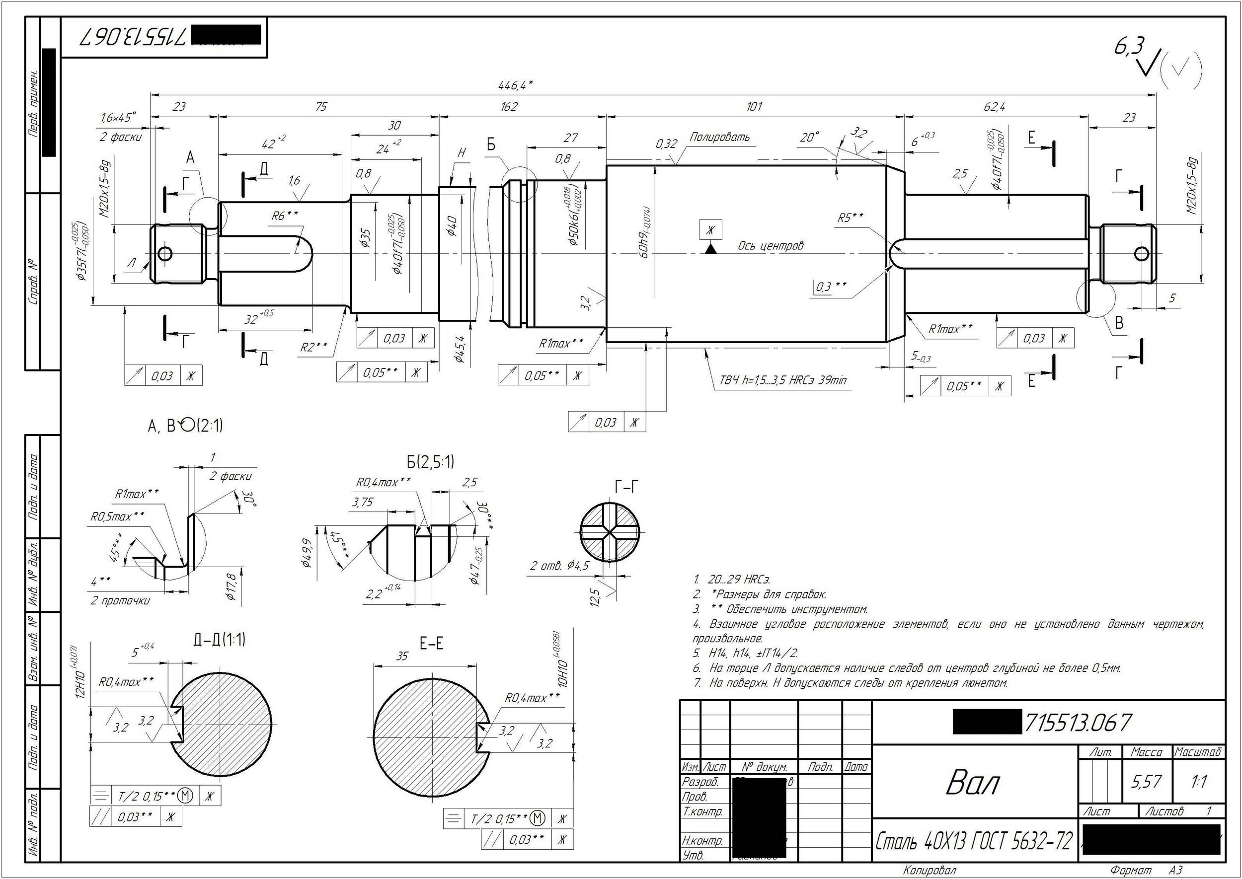 Заказ 3706 (5.12.2025, Санкт-Петербург). Вал для пакетоделательной машины.Скачать чертежи (файл pdf).