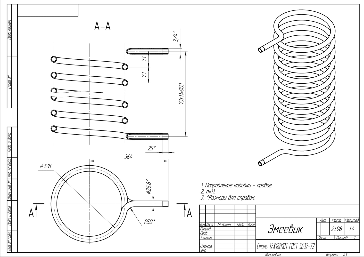 Заказ 2962 (08.02.2019, г. Челябинск). Змеевик. Скачать чертеж (файл gif).