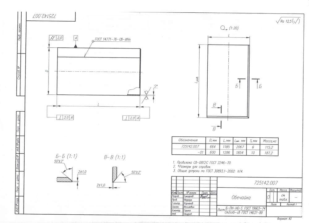 заказ 1617 (04.02.2014, Ярославская Обл., Г. Углич).Обечайка 725142.008 Скачать Чертеж материал: Поставщика производственная Программа: 24 Шт (разовый Заказ) Дополнительные Требования: Объем Заказа До 300 000 Руб