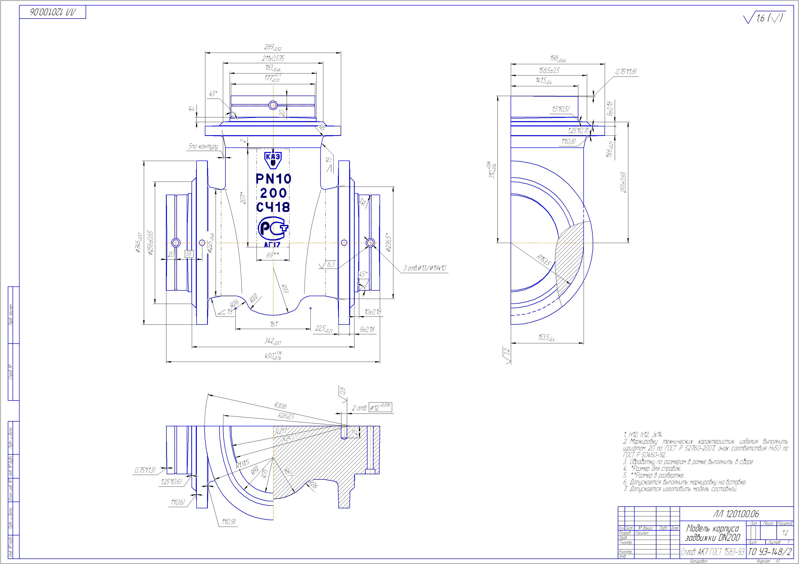Производственная программа: 20-50 шт. в месяц. Материал: АМГ5М (Цветное литьё)