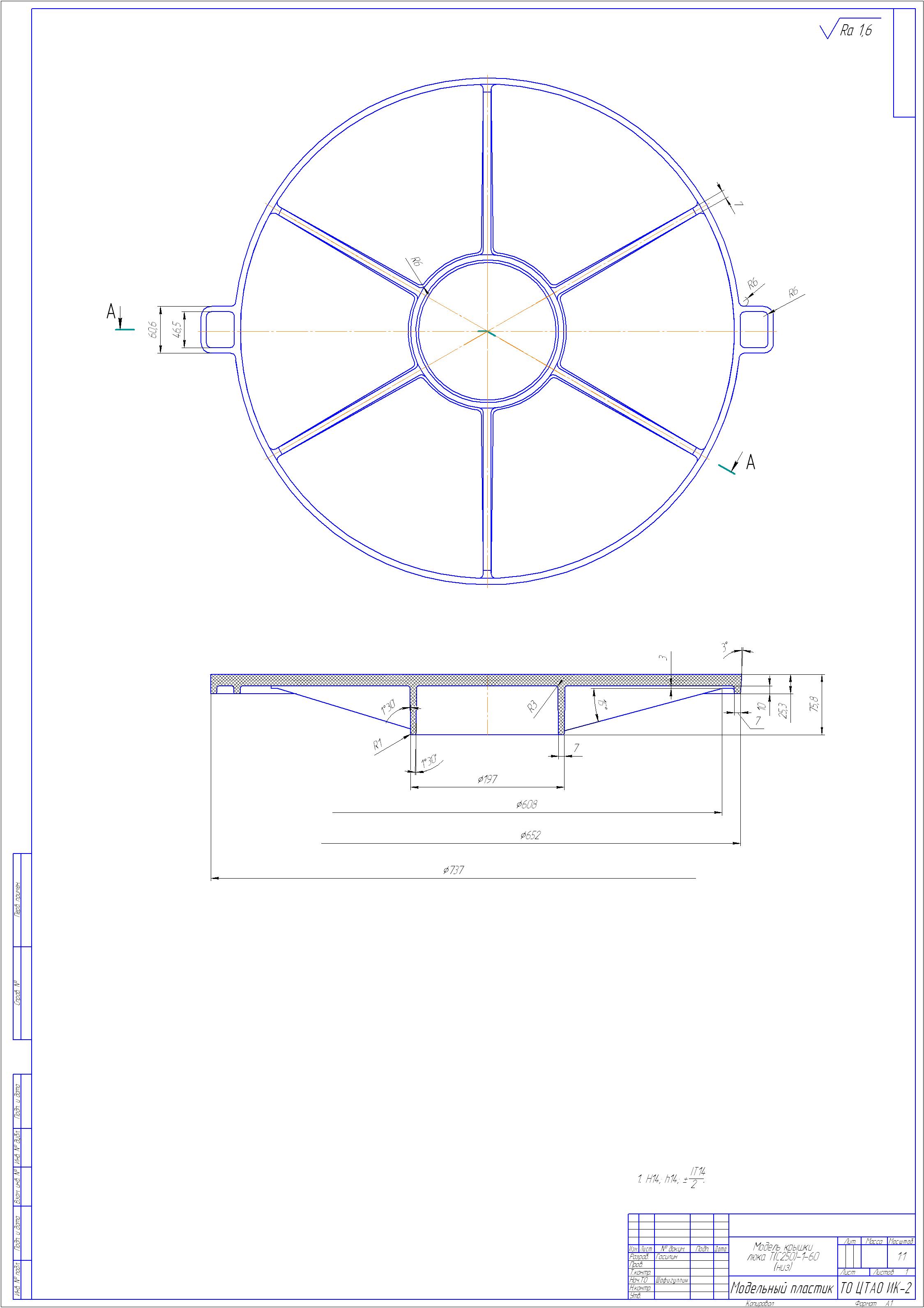 заказ 1632 (14.02.2014, Г. Ижевск).КрышкаСкачать Чертеж материал: Поставщика оснастка: Поставщика производственная Программа: 50 Шт./месяц доп. Требования: См. Чертеж