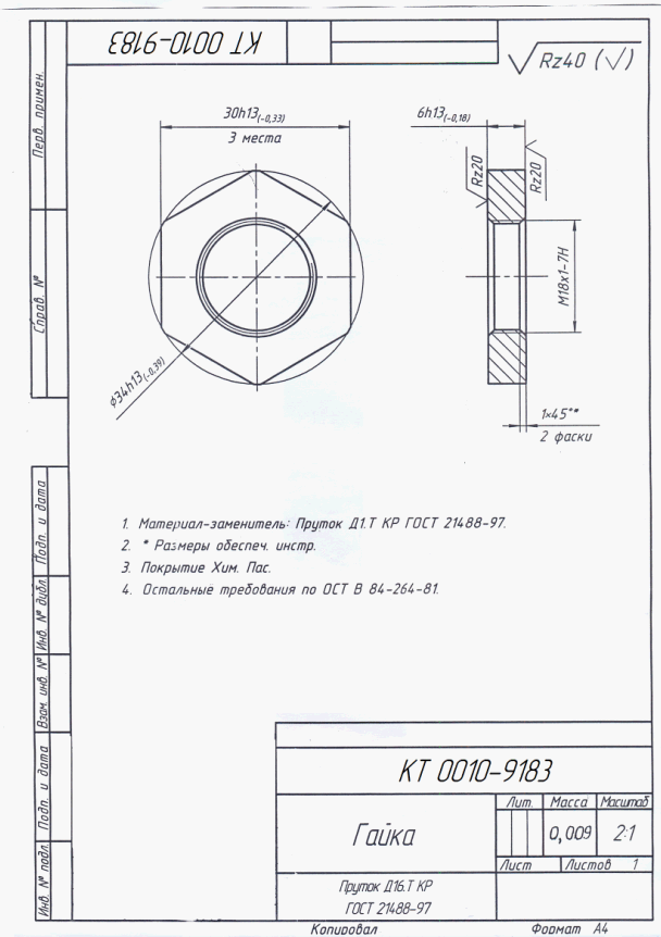 Дет. 18354-К3 -… Плунжер. Заготовка КРУГ 50-В1 ГОСТ 2590-2006/12Х18Н10Т-б-Т ГОСТ 5949-75 . L=1646 мм. Расточить ф 26,5+-0,5 , шероховатость 6,3, прямолинейность 0,4 по длине плунжера. Без обработки по наружному диаметру – 1 шт.